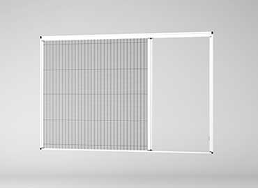 Λειτουργεί χειροκίνητα και διαθέτει πανί πλισέ και πολύ χαμηλό κάτω οδηγό. Για το κλείσιμο ακινητοποιείται με μαγνήτη.